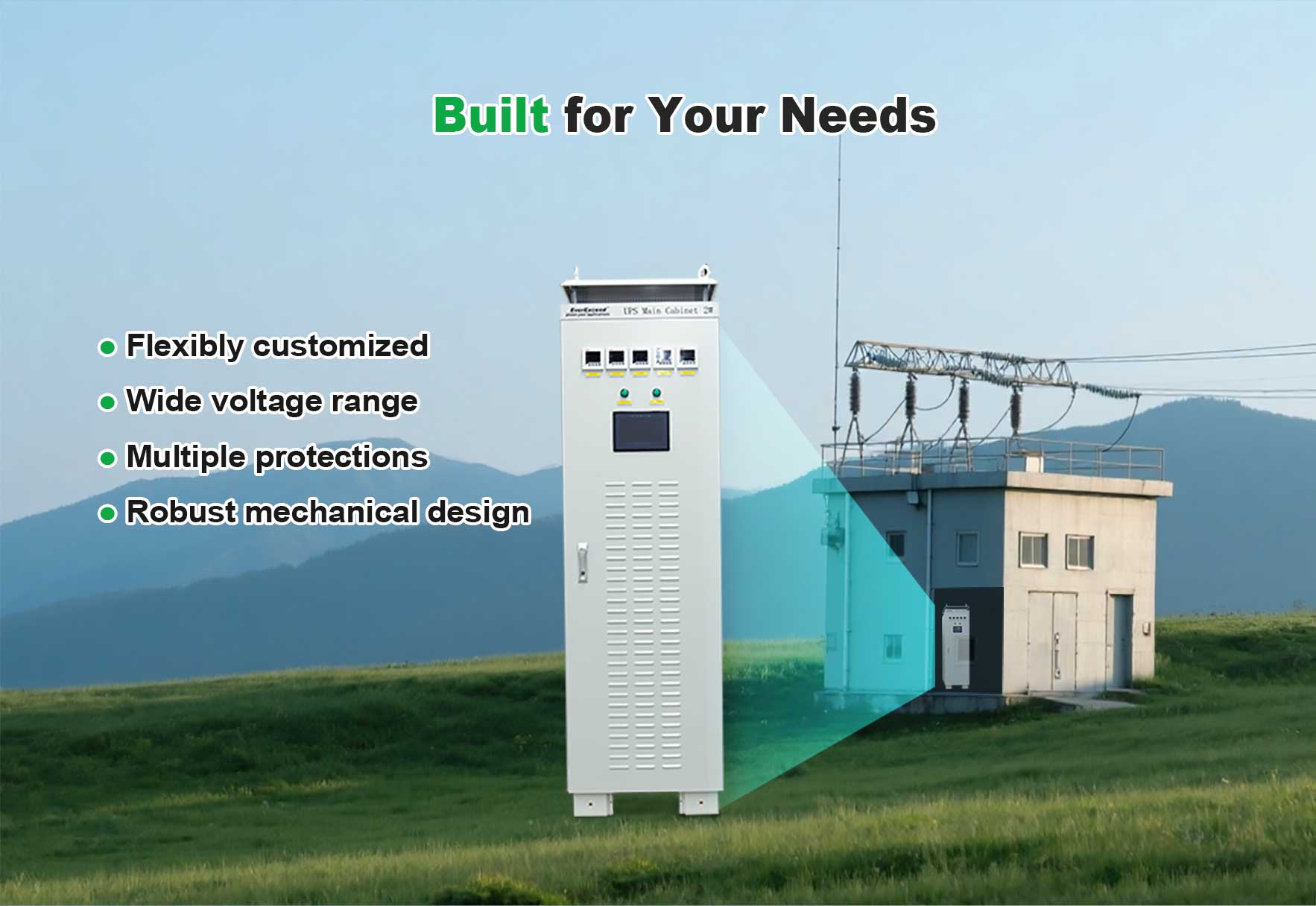 UPS industri dapat disesuaikan sesuai dengan lingkungan pelanggan, termasuk tegangan input dan output, fasa, frekuensi, tegangan baterai, arus pengisian dan level IP kabinet, dll. |