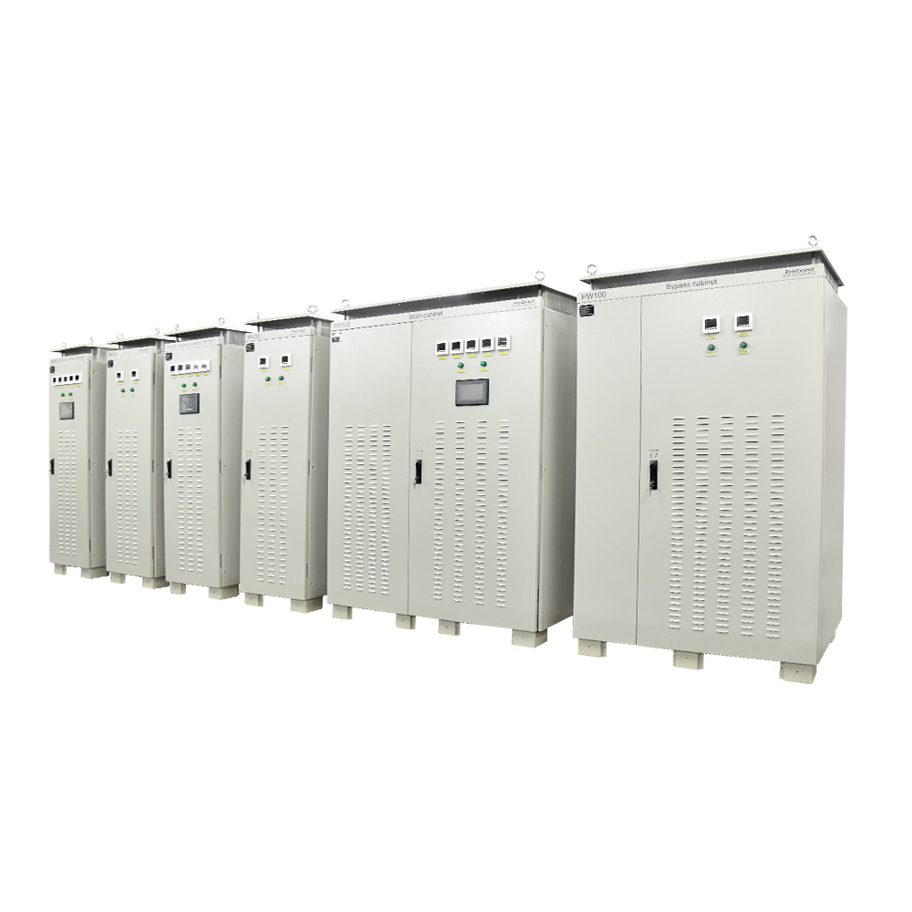 Transformator input, transformator output, dan transformator bypass terintegrasi mewujudkan isolasi galvanik yang lengkap. Alih-alih komponen IGBT dan SCR diskrit, kami menggunakan IGBT dan SCR modular pada penyearah dan inverter, sehingga menghasilkan keandalan yang sangat tinggi.