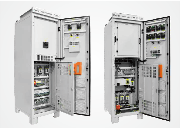 Isolasi input/output dengan proteksi lonjakan SPD terintegrasi, dan kabinet bypass dengan stabilisasi dan distribusi tegangan, memastikan keandalan dan keamanan daya;