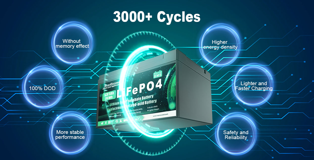 Baterai berkapasitas besar, cocok untuk digunakan di RV, berkemah, kapal pesiar, perahu nelayan, kereta golf, sistem energi surya, dll.