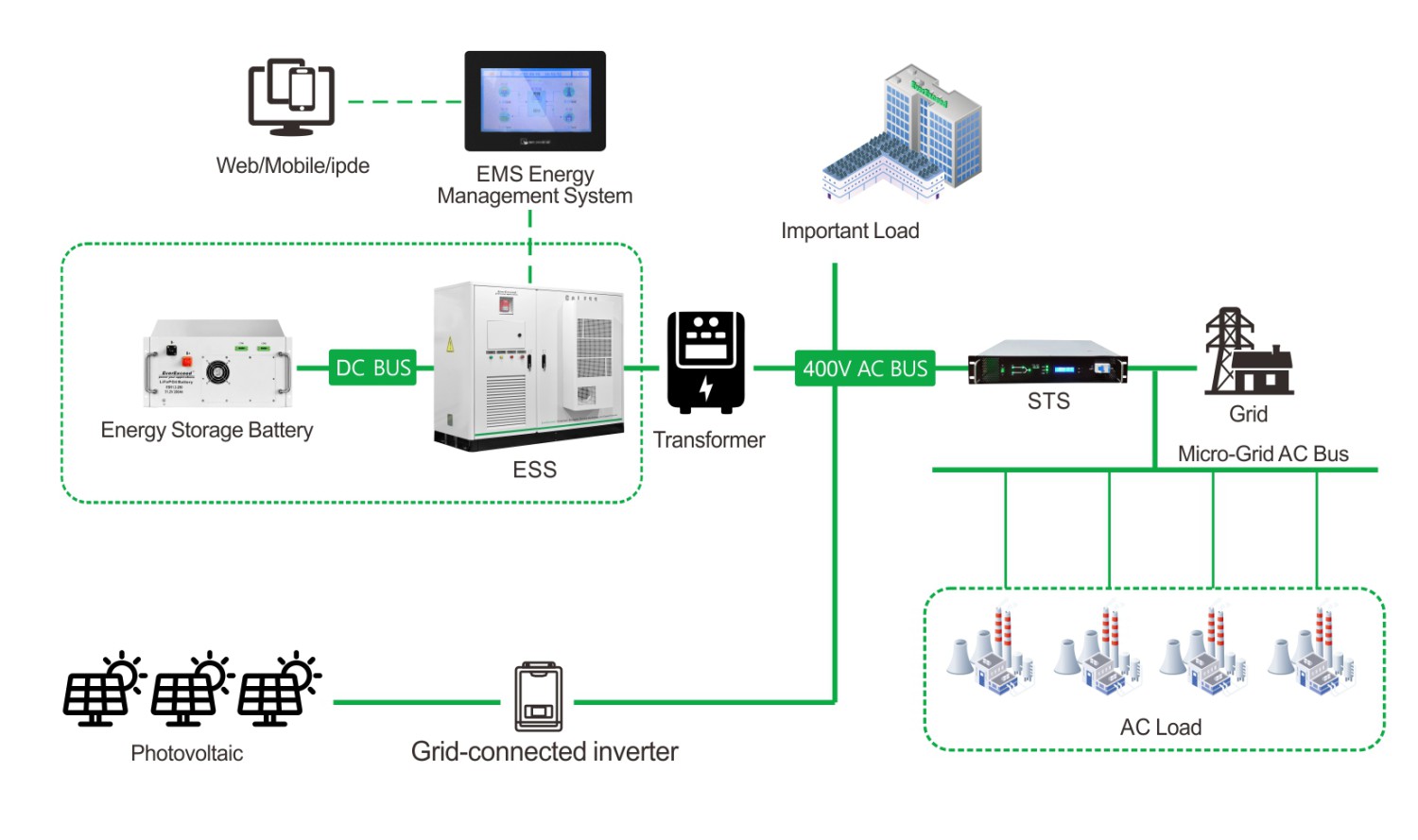 Proyek ini mengadopsi lima set sistem penyimpanan energi kabinet luar ruangan modular EverPower. Sistem ini merupakan solusi ideal untuk pemangkasan puncak dan pengisian lembah di kawasan industri nol karbon, komunitas vila, dan skenario aplikasi serupa. Sistem ini juga mendukung kopling sisi AC untuk penerapan yang serbaguna.