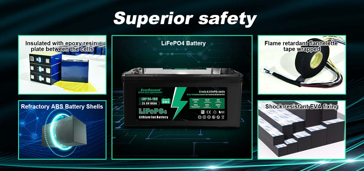 --Kami menggunakan baterai lithium besi fosfat, yang tidak mudah terbakar, tidak meledak, dan memiliki rentang suhu operasi yang luas, sehingga dapat menjamin keamanan penggunaan.