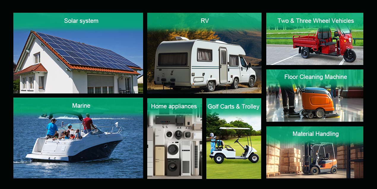 -- Baterai berkapasitas kecil, cocok untuk digunakan pada UPS, lampu darurat, mainan listrik, mesin pembersih lantai kecil, kereta golf, dll.